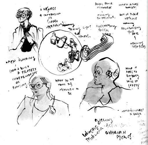 Feminist Spaces hosts face-to-face workshops that bring people together with a range of diverse and allied individuals and projects. These workshops are by invitation only, in order to create safe(r) spaces in which to explore our lived experiences of occupying hostile environments and to articulate some of the opportunities and challenges of creating feminist spaces. We use this time to record and enable acts of resistance to hostile environments – through voice, creativity and action – in order to build a collaborative, capacity-releasing, feminist network.